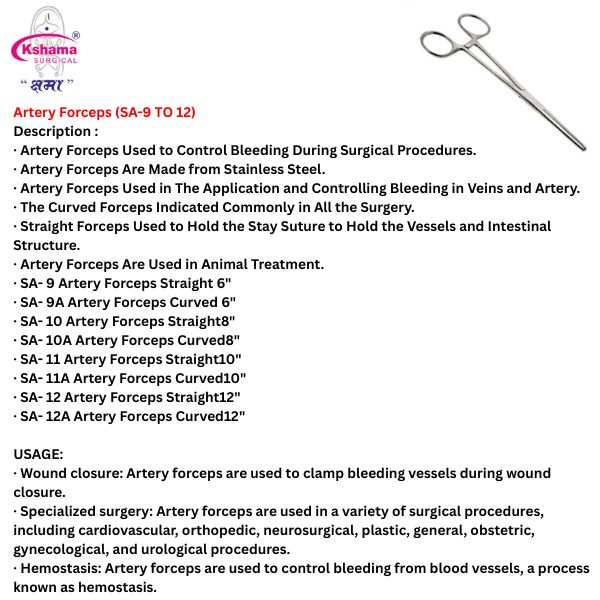 - Hemostasis: Artery forceps are used to control bleeding from blood vessels, a process known as hemostasis.