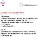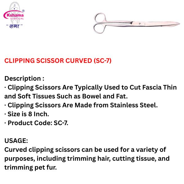 Curved clipping scissors can be used for a variety of purposes, including trimming hair, cutting tissue, and trimming pet fur.