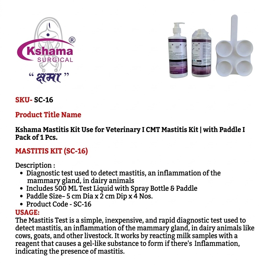 The Mastitis Test is a simple, inexpensive, and rapid diagnostic test used to detect mastitis, an inflammation of the mammary gland, in dairy animals like cows, goats, and other livestock. It works by reacting milk samples with a reagent that causes a gel-like substance to form if there’s inflammation, indicating the presence of mastitis.
